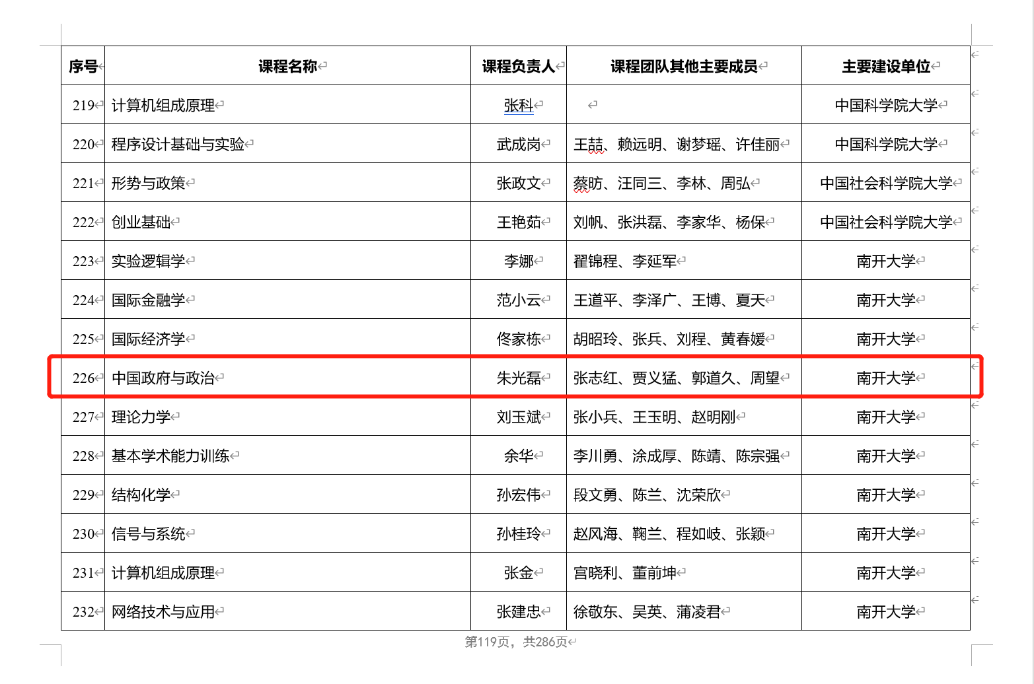 讲席教授、中国政府发展联合研究中心主任朱光磊教授担纲课程负责人的 “中国政府与政治”本科课程作为唯一一门“中国政治”类课程成功入选。