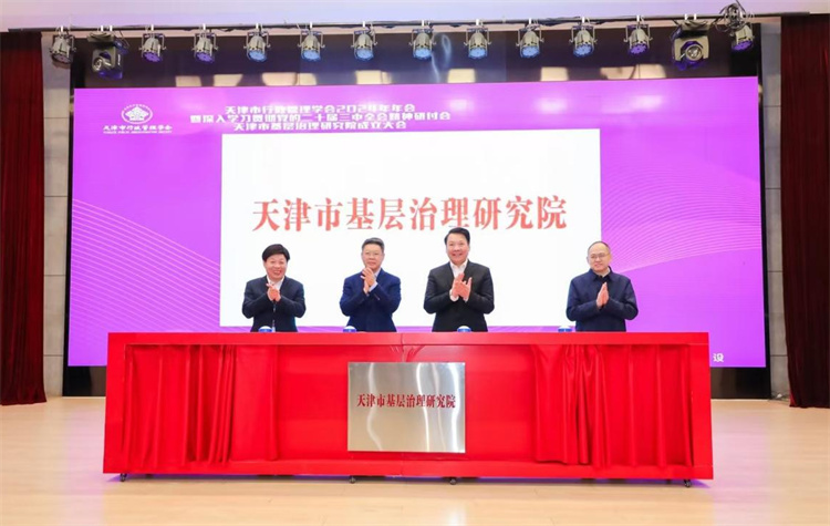 会上,李宝荣、陈雨露、张津生、王立文共同为天津市基层治理研究院揭牌。
