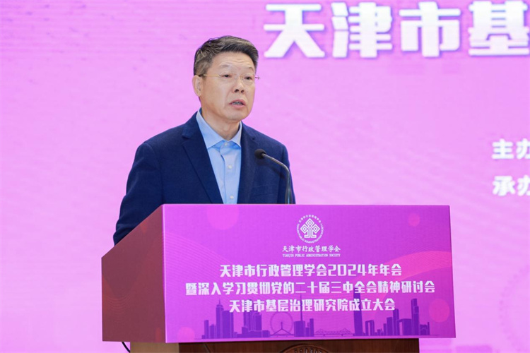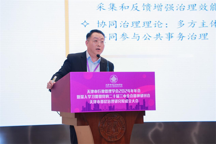 李宝荣在致辞中表示,党的二十届三中全会指出,当前和今后一个时期是以中国式现代化全面推进强国建设、民族复兴伟业的关键时期,全会把“继续完善和发展中国特色社会主义制度,推进国家治理体系和治理能力现代化”确定为“进一步全面深化改革”的总目标。多年来,南开大学在周恩来政府管理思想和实践的研究、教育方面做了大量工作,产生了重要的影响。天津市行政管理学会是全国第一个省级行政管理学会,在学术研究、人才培养、政策咨询等方面发挥了积极的作用,为全国行政管理领域的发展作出了重要贡献。他强调,学习贯彻党的二十届三中全会精神,要加强理论研究,推动实践创新,强化人才培养和学会建设,为推进我国行政管理事业的发展、实现中国式现代化作出更大贡献。